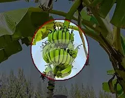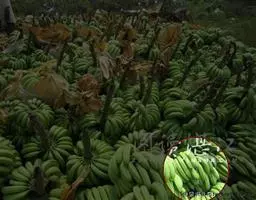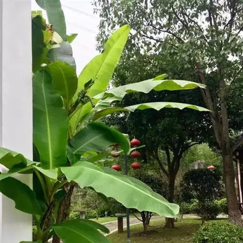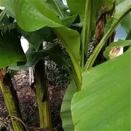 香蕉’),芭蕉科芭蕉属多年生草本植物,植株丛生,有匐匍茎;假茎浓绿有黑色斑点;叶片长圆形,…