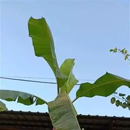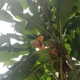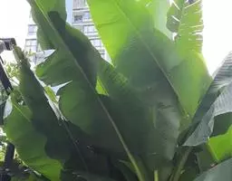 红蕉,假茎高1-2米。叶片长圆形,长1.8-2.2米,宽68-80厘米,叶面黄绿色,叶背淡黄绿色,…