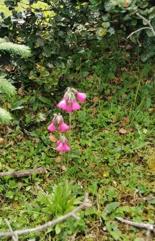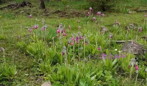 偏花报春(学名:Primula secundiflora Franch.):报春花科,报春花属多年生草本植物,根状茎粗短,叶通常多枚丛生;叶片矩圆形、狭椭圆形或倒披针形,先端钝圆,基部渐狭窄,边缘三角形小牙齿,两面均疏被小腺体,叶柄甚短或有时与叶片近等长,花葶高可达90厘米,伞形花序,有5-10朵花,苞片披针形,花萼窄钟状,染紫色,花冠红紫色至深玫瑰红色,裂片倒卵状矩圆形;蒴果稍长于宿存花萼。6-7月开花,8-9月结果。