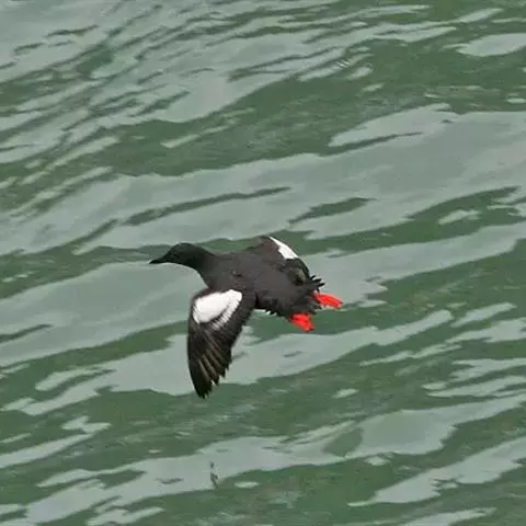 白腹海鹦,前趾间有蹼膜,后趾缺如。翅窄而短小,尾短。体羽黑白二色,雌雄羽色相似