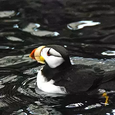 角嘴海雀,是海雀科、角嘴海雀属的中型海鸟,体长32-41厘米,嘴短而粗呈圆锥状、橙色。夏羽上嘴基部…