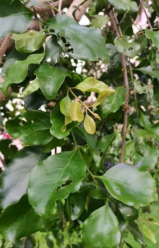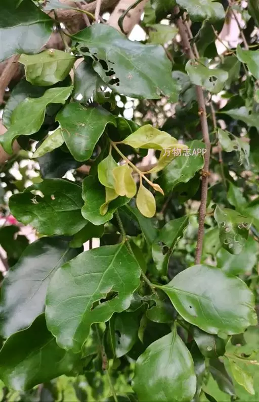 灌木,高0.5-1米;嫩枝、叶密被褐色或红褐色星状毛,有时具散生叠生星状毛,小枝黑色,无毛,具散生皮孔。叶近对生或互生,革质,卵形、长卵形或椭圆形,长5-8厘米,宽3-4.5厘米,顶端圆钝,基部近圆形,上面无毛,下面被绒毛;侧脉4-5对,在叶上面明显;叶柄长6-12毫米,无毛。