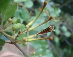 总状花序,1-3个生于小枝已落叶腋部或叶腋,具花(2-)3-4(-5)朵,密集呈伞形,花序和花均密被褐色星状毛,总花梗和花序轴共长1-2(-3)毫米;花梗长2-3毫米;苞片卵状三角形,长约1毫米;花红色,花托椭圆状,长2-3毫米;副萼环状,具4齿;花冠花蕾时管状,长2.2-2.8厘米,稍弯,下半部膨胀,顶部椭圆状,裂片4枚,披针形,长6-9毫米,反折,开花后毛变稀疏;花丝长约2毫米,花约长3-4毫米,药室常具横隔;花柱线状,柱头圆锥状。