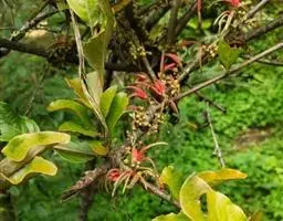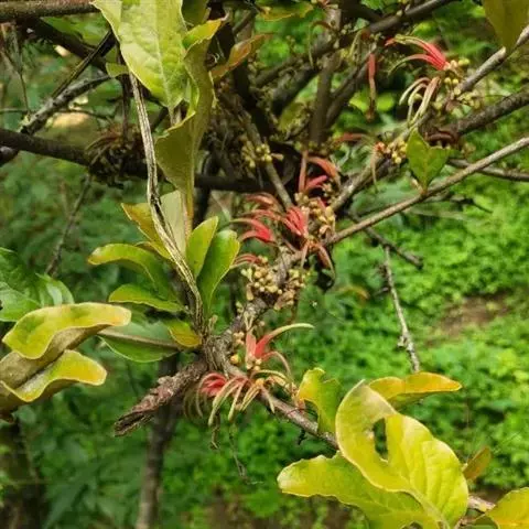 桑寄生(学名:Taxillus sutchuenensis (Lecomte) Danser),别称桃树寄生,苦楝寄生等。嫩枝、叶密被褐色或红褐色星状毛,有时具散生叠生星状毛,小枝黑色,无毛,具散生皮孔。产于云南、四川、甘肃、陕西、山西、河南、贵州、湖北、湖南等地。有祛风湿,益肝肾,强筋骨,安胎的功效。