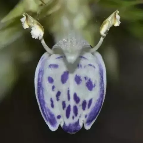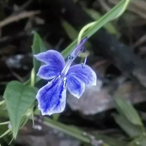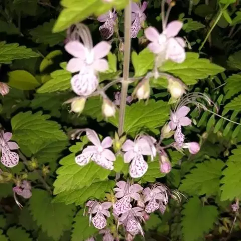 多年生草本,有时蔓生,仅基部木质化,高30-60厘米;茎方形,被向下弯曲的柔毛。叶片纸质,宽卵形至近圆形,长1.5-5厘米,宽1.5-4厘米,顶端钝,基部阔楔形至圆形,边缘具4-6对钝齿,两面均被柔毛及腺点,侧脉3-5对;叶柄长0.3-1厘米,被柔毛。单花腋生,有长1.5-3厘米的纤细花柄,近花柄中部生两枚锥形细小苞片;花萼杯状,长约6毫米,结果时略增大,两面均被柔毛和疏生腺点,5裂,裂片卵圆形至卵状披针形,有明显脉纹;花冠淡兰色,外面疏生细毛和腺点,喉部通常被柔毛,下唇中裂片较大,全缘,花冠管长6-9毫米;雄蕊4枚,与花柱均伸出花冠管外,子房密生绒毛。蒴果4瓣裂,果瓣倒卵形,无翅,表面被粗毛,不明显凹凸成网纹,长约4毫米,淡黄色。花果期5-9月。
