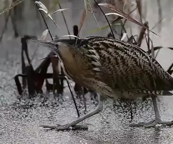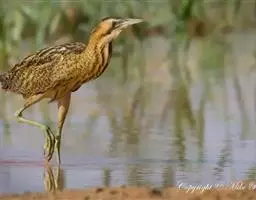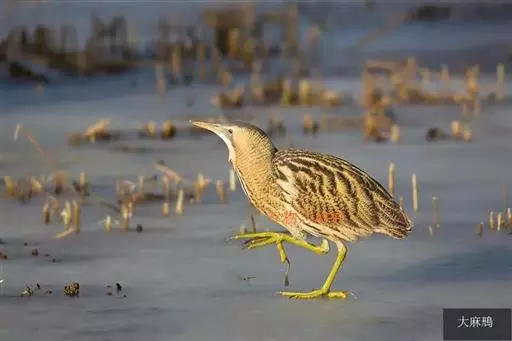 大麻鳽(学名:Botaurus stellaris)属大型鹭类,体长59-77厘米。身较粗胖,嘴粗而尖;颈、脚较粗短;头黑褐色;背黄褐色,具粗著的黑褐色斑点;下体淡黄褐色,具黑褐色粗著纵纹;嘴黄褐色;脚黄绿色。栖息于山地丘陵和山脚平原地带的河流、湖泊、池塘边的芦苇丛。除繁殖期外常单独活动,秋季迁徙季节也集成5-8只的小群。夜行性,多在黄昏和晚上活动,白天多隐蔽在水边芦苇丛和草丛中,有时亦见白天在沼泽草地上活动。主要以鱼、虾、蛙、蟹、螺、水生昆虫等动物性食物为食。分布甚广,欧洲、非洲、亚洲均有。