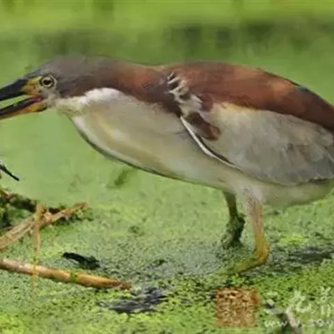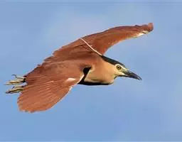 棕夜鹭是一种中型涉禽,身长56-66 cm。这是一个矮胖的鹭。黑色头冠,腿爪是明亮的黄肉桂色。…