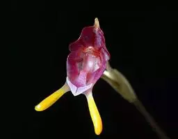 附生草本,较高大。假鳞茎稍密集,通常为圆柱形,较少近长圆形,基部常多少平卧,自下向上渐狭,上部直立,长(3-)7-18厘米,直径3-8(-12)毫米,顶端具2叶。叶线状倒披针形或线状匙形,纸质,长8-25厘米,宽1.2-3厘米,先端渐尖并有细尖,基部收狭成柄,有关节;叶柄长1-4厘米。花葶长14-30厘米,外弯;花序柄略压扁,两侧有很狭的翅,上部靠近花序下方有1-2枚不育苞片;总状花序长9-20厘米,具数十朵小花;花苞片狭披针形,薄膜质,长3-7毫米;花梗和子房长4-7毫米;花绿白色或淡绿黄色,较密集;中萼片近椭圆状长圆形,长2-3毫米,宽0.8-1毫米,先端钝,边缘外卷;侧萼片卵状椭圆形,略宽于中萼片;花瓣狭线形,长2-3毫米,宽约0.3毫米,先端浑圆;唇瓣近卵状长圆形,长2-3毫米,宽约1.7毫米,先端近急尖或具短尖头,边缘略呈波状,从中部向外弯,无胼胝体;蕊柱长1.5-2毫米,稍向前弯曲,顶端有翅,基部略扩大。蒴果倒卵状椭圆形,长4-6毫米,宽3-4毫米;果梗长3-6毫米。花期9-12月,果期次年1-4月。