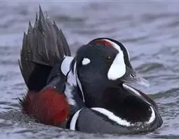 长尾鸭体长约58厘米,是中等体型的灰、黑及白色鸭,中央尾羽特长,雄鸟胸部的黑色斑块为特征。…