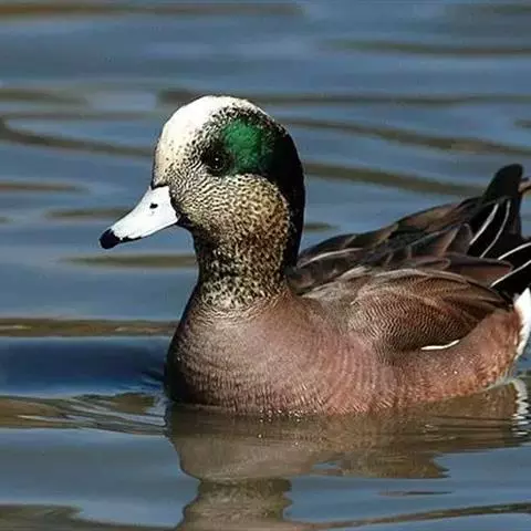 赤颈鸭(学名:Anas penelope)属中型鸭类,个体较家鸭小,和罗纹鸭大小差不多,体长41-52厘米,体重0.6千克左右。雄鸟头和颈棕红色,额至头顶有一乳黄色纵带。背和两胁灰白色,满杂以暗褐色波状细纹,翼镜翠绿色,翅上覆羽纯白色。在水中时可见体侧形成的显著白斑,飞翔时和后面的绿色翼镜形成鲜明对照,容易和其他鸭类相区别。雌鸟上体大都黑褐色,翼镜暗灰褐色,上胸棕色,其余下体白色。栖息于江河、湖泊、水塘、河口、海湾、沼泽等各类水域中。主要以植物性食物为食。常成群在水边浅水处水草丛中或沼泽地上觅食眼子菜、藻类和其他水生植物的根、茎、叶和果实。分布于欧亚大陆北部。越冬在欧洲南部、非洲东北部和西北部、埃及北部、中南半岛。偶见于格陵兰、北美、安的列斯群岛和加里曼丹。