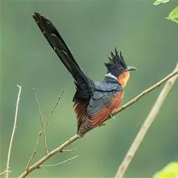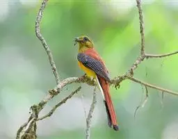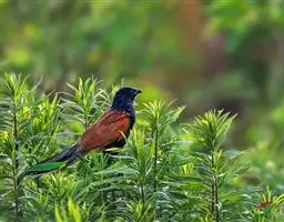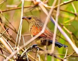 斑翅凤头鹃栖息于低山丘陵和山麓平原等开阔的疏林、竹林,灌丛等各类森林环境中,最高分布海拔高度可达4000米以上,是林栖鸟类。