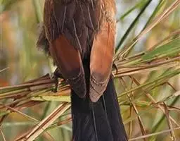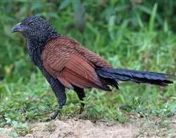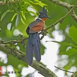 红翅凤头鹃:体长约38厘米,顶冠及凤头黑色,具显眼的直立凤头,背及尾黑色而带蓝色光泽,翅栗红色,…
