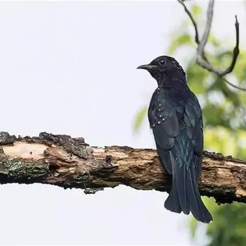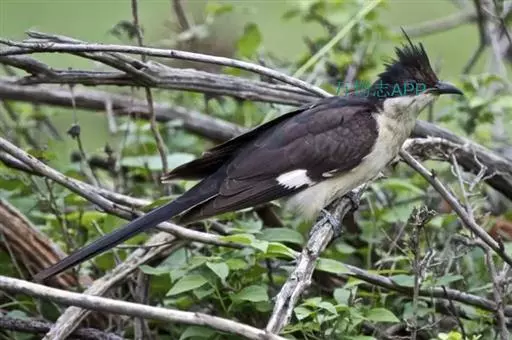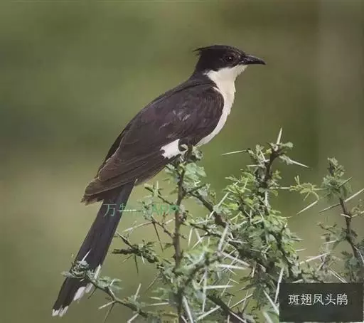 斑翅凤头鹃: 成鸟具羽冠,上体及头侧、翅、尾等黑色,具铁绿色亮辉,尾羽端部具白斑,两侧者形宽,…