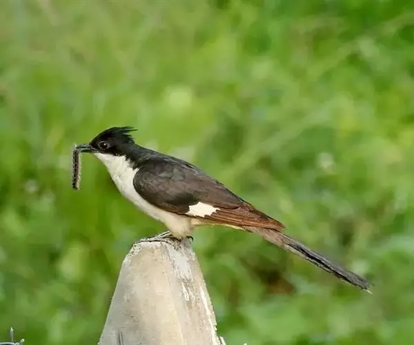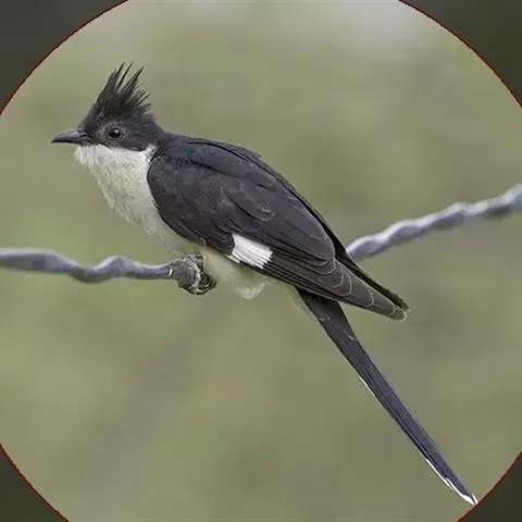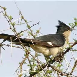 斑翅凤头鹃(学名:Clamator jacobinus): 成鸟具羽冠,上体及头侧、翅、尾等黑色,具铁绿色亮辉,尾羽端部具白斑,两侧者形宽,中央者较狭;下体白色、淡灰白或略带棕黄色。虹膜褐至红褐色;嘴黑色;脚灰蓝黑色。和红翅凤头鹃区别在羽冠较短;翅黑色而具一大白斑;尾具白端;下体大致白色。