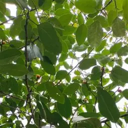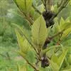 常绿小乔木,树皮黑褐色,枝粗糙,叶互生,纸质,倒卵形至长圆形,长10-20厘米,宽4-7厘米,先端具短尖,基部斜楔形或圆形,全缘或微波状,表面无毛,背面微被柔毛或黄色小突体;基生侧脉短,侧脉6-9对;叶柄长1.5-4厘米;托叶卵状披针形,长约1.7厘米。