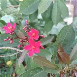 变叶珊瑚花,是大戟科麻风树属常绿灌木。变叶珊瑚花单叶互生,倒阔披针形,叶面为浓绿色,叶背为紫绿色,…