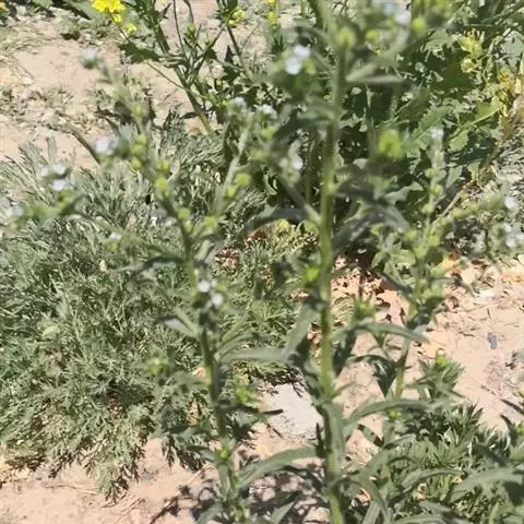 南美天芥菜是紫草科天芥菜属植物。多年生草本。茎直立或斜升,基部木质化,不分枝或茎上部分枝,密生黄色…