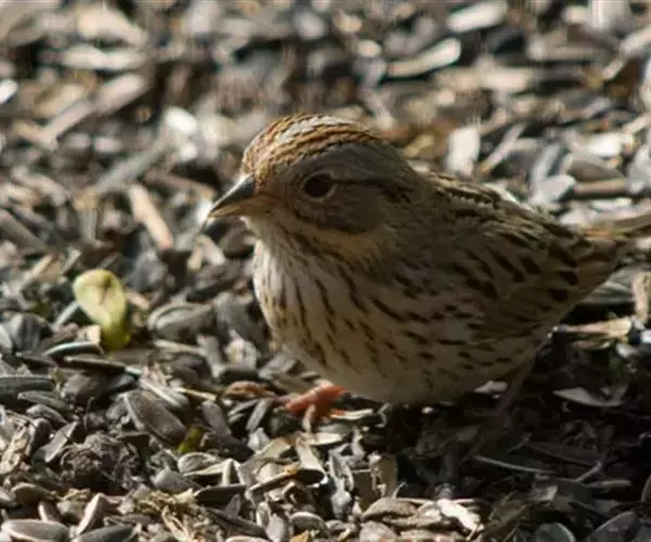 林氏带鹀与歌带鹀(Song Sparrow)的区别:林氏带鹀尾更短,尾偏灰色,头部图案也不一样,棕色的面部具有清晰的带角的斑块。歌带鹀尾圆,尾部呈棕色;面部灰色,具贯眼纹。