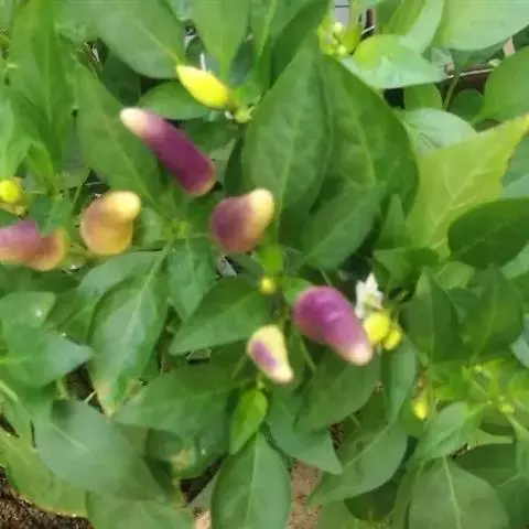 一年生或有限多年生植物;高40-80厘米。茎近无毛或微生柔毛,分枝稍之字形折曲。叶互生,枝顶端节不伸长而成双生或簇生状,矩圆状卵形、卵形或卵状披针形,长4-13厘米,宽1.5-4厘米,全缘,顶端短渐尖或急尖,基部狭楔形;叶柄长4-7厘米。花单生,俯垂;花萼杯状,不显著5齿;花冠白色,裂片卵形;花药灰紫色。果梗较粗壮,俯垂;果实长指状,顶端渐尖且常弯曲,未成熟时绿色,成熟后成红色、橙色或紫红色,味辣。辣椒花有两种,一种是白的,一种是紫的,两种花都有四瓣花瓣至六瓣花瓣三种。而且两种花结出来的辣椒也有所不同:紫花结出来的辣椒是紫的,而白花结出来的辣椒就是普通的红辣椒。种子扁肾形,长3-5毫米,淡黄色。花果期5-11月。 [1-2]