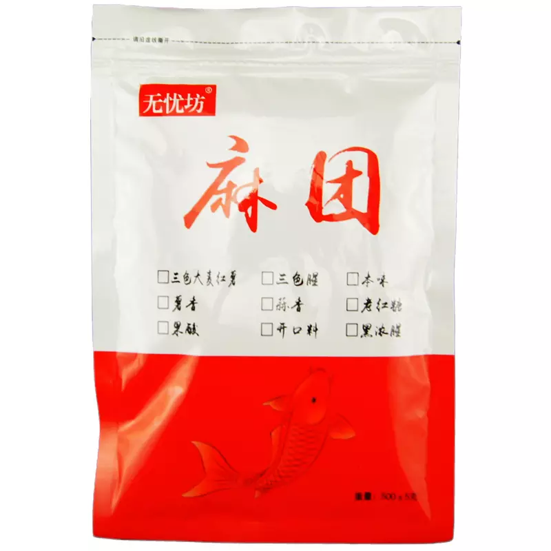 豆饼,芝麻饼粉碎,加入适量面粉,鱼饵用水拌和