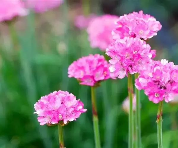 海石竹“罗裙”(Armeria maritime “Laucheana”)株高20厘米,鲜艳的粉红色花朵,花簇花期长。