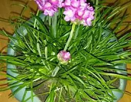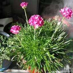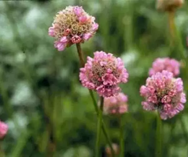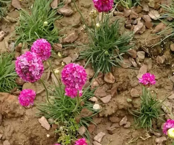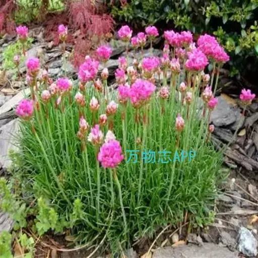 蓝雪科矾松属宿根草花,植株低矮,丛生状,株高20-30厘米。叶基生,叶线状长剑形, 海石竹 花为粉红色至玫瑰红色,全缘、深绿色;春季开花,头状花序顶生。花茎细长,小花聚生于花茎顶端。呈半圆球形,紫红色,花茎约3厘米。