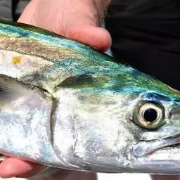 蓝点马鲛,鲭科,鲅鱼的1种。体长而侧扁,体色银亮,背具暗色条纹或黑蓝斑点,口大,吻尖突,牙齿锋利,…