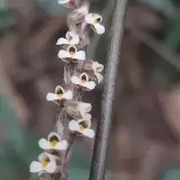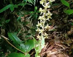 吻兰(学名:Collabium chinense (Rolfe) Tang et Wang):假鳞茎细圆柱形,貌似叶柄,基部稍扩大并多少贴伏于根状茎上,被鞘。叶纸质。花葶长14-18厘米,无毛,被2-4枚膜质筒状鞘;总状花序长4-7厘米,疏生4-7朵花;花中等大;萼片和花瓣绿色;花瓣长圆形,与萼片等长而稍狭,先端渐尖;唇瓣白色,倒卵形,长约9毫米,基部具爪,3裂。花期7-11月。