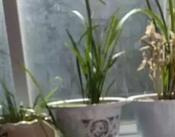 上盆(或翻盆)时间一般在春季3-4月或秋季10-11月。花盆以口小、盆深、底孔大的为佳。新从山上挖来的野生苗需理植于瓦盆(泥盆)中,这样兰花泥易干,通气性好.容易发根;2-3年后方可换人紫砂盆或瓷盆。兰花种植(在盆中)的方法与一般花卉不同,尤其是名种兰花,翻种移盆必须洗根。方法足将根浸入清水中,用旧牙刷或毛笔轻轻洗刷,切勿用力过大伤根;用剪刀将残叶、黄叶、断裂根、发黑腐烂根剪去,注意勿伤幼芽。然后将处理好的植株放在阴凉通风处晾干,待根部发白并显细小皱纹柔软时,再植入盆中。