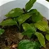 方法一 准备好兰盆及植料后,将兰株倒拿(根在上,叶在下)放于水龙头下以慢水冲洗,但水压切忌过强,以免伤兰根及叶子。用拇指和食指抓住兰头,小指抵住盆缘,用竹筷将根固定,当放入盆内时,尽量不要让根接触到盆壁。将豆粒大的混合石砾倒入盆底至三分之一处。然后倒入中粒植料至五分之四处,填实和尽量不要留下空间。将竹筷拔出,并摇实盆中植料。填实植料后,再用大粒植料埴入至距盆缘1.5厘米处。最后再倒入豆粒大植料,以将假鳞茎全部埋入土中为度,然后充分摇实。用压土工具轻压植料,并将表面弄平。种植完毕后,植料在盆中以中央稍高为好。