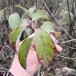 危害症状:该病主要为害枝干。在皮层上形成圆圈、椭圆形或不规则厚膜,形似膏药。所以,称它为灰色膏药病。在成年植株上发生,通常活枝和死枝都能受害。受害后,树势减弱,甚至枯死。