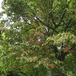 危害症状:以草履蚧、牡蛎蚧为多,若虫孵化出土后,爬至枝条嫩梢吸食汁液,轻者使枝条生长不良,重者引起落叶,致使枝条枯死,易招致霉菌寄生,严重影响树木生长。