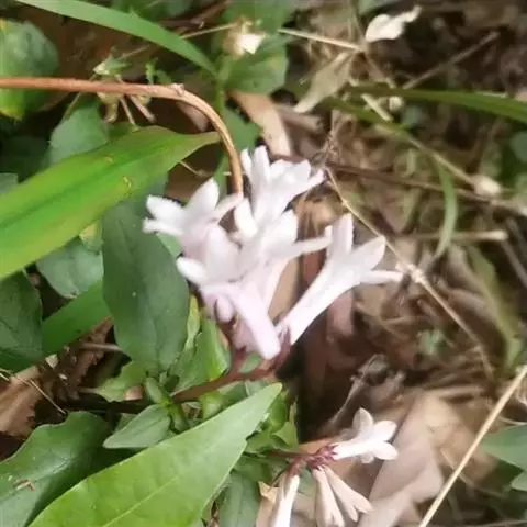 日本蛇根草生长于山坡、常绿阔叶林下的沟谷沃土上。