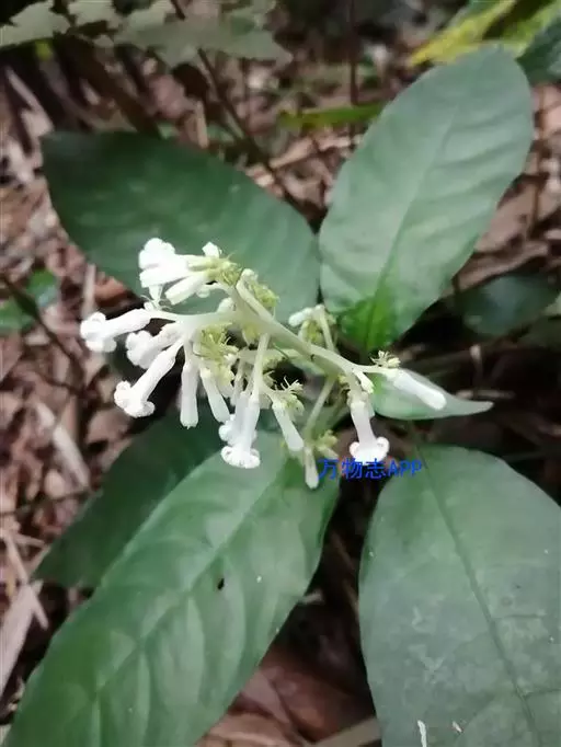花序顶生,有花多朵,总梗长通常1-2厘米,多少被柔毛,分枝通常短,螺状;花二型,花柱异长;长柱花:花梗长1-2毫米,常被短柔毛;小苞片披针状线形或线形,长4-6毫米,渐尖,近无毛或被稀疏缘毛;萼近无毛或被短柔毛,萼管近陀螺状,长约1.3毫米,宽约1.4毫米,有5棱,裂片三角形或近披针形,长0.7-1.2毫米;花冠白色或粉红色,近漏斗形,外面无毛,管长1-1.3厘米,喉部扩大,里面被短柔毛,裂片5,三角状卵形,长2.5-3毫米,顶端内弯,喙状,里面被鳞片状毛,背面有翅,翅的顶部向上延伸成新月形;雄蕊5,着生在冠管中部之下,花丝无毛,长2-2.5毫米,花药线形,长2.5-3毫米;花柱长9-11毫米,被疏柔毛,柱头2裂,裂片近圆形或阔卵形,长约1毫米,不伸出;短柱花:花萼和花冠同长柱花;雄蕊生喉部下方,花丝长2-2.5毫米,花药长2.5毫米,不伸出;花柱长约3毫米,柱头裂片披针形,长约3毫米。