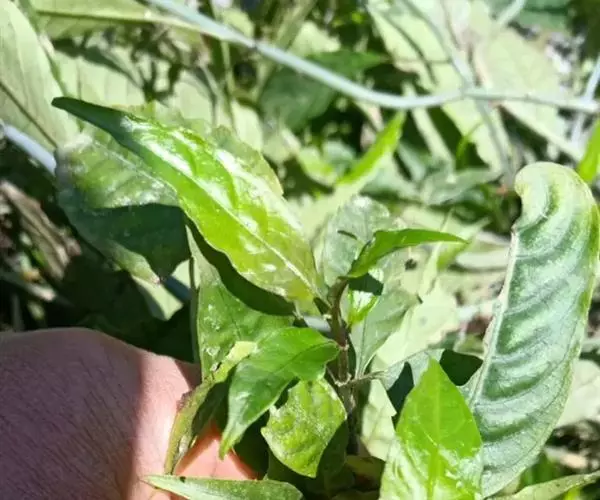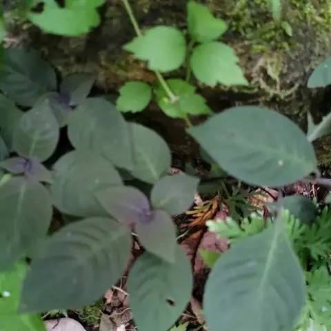 草本,高20-40厘米或过之;茎下部匐地生根,上部直立,近圆柱状,上部干时稍压扁,有二列柔毛。叶片纸质,卵形,椭圆状卵形或披针形,有时狭披针形,长通常4-8厘米,有时可达10厘米或稍过之,宽1-3厘米,顶端渐尖或短渐尖,基部楔形或近圆钝,干时上面淡绿色,下面变红色,有时两面变红色,亦有两面变绿黄色,通常两面光滑无毛,有时上面散生短糙毛,下面中脉和侧脉上被柔毛;中脉在上面近平坦,下面压扁,侧脉每边6-8条,纤细,弧状上升,末端近叶缘分枝消失,上面不很明显,下面微凸起;叶柄压扁,长通常1-2厘米,有时可达3厘米或过之,无毛或被柔毛;托叶脱落,未见。
