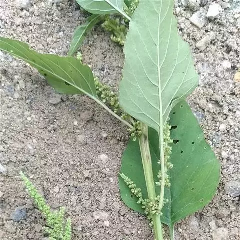 千穗谷一年生草本;茎绿色或紫红色,分枝,无毛或上部微有柔毛。叶片菱状卵形或矩圆状披针形,具凸尖,…