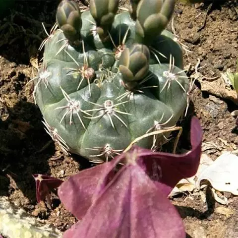 绯花玉 Speg.)是仙人掌科、裸萼球属多肉植物,植株呈扁球形,表皮墨绿色,刺针状,…