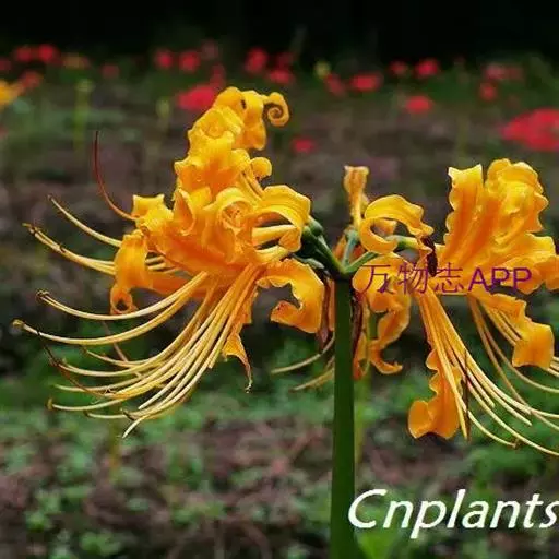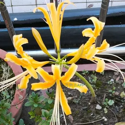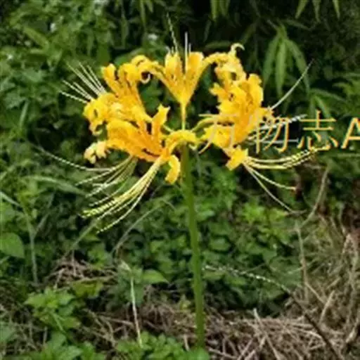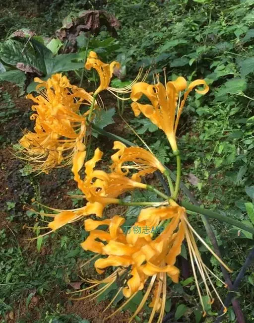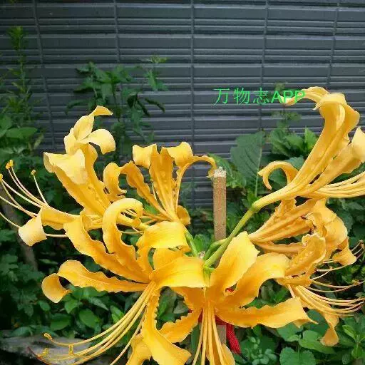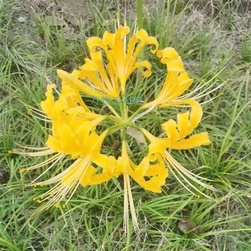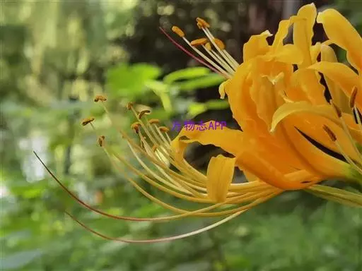 中国石蒜草本,地生。植株无毛,叶带状,顶端圆;伞形花序,花黄色;花被裂片背面具淡黄色中肋,倒披针形…