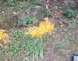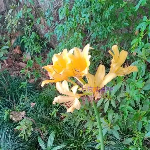 忽地笑(学名:Lycoris aurea (L'Hér.) Herb)草本,地生。鳞茎卵形;叶剑形;伞形花序,有花4-8朵,花黄色;花被裂片背面具淡绿色中肋,雄蕊略伸出于花被外,花丝黄色;蒴果具三棱,室背开裂;种子少数,近球形。