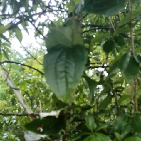 一年生(北方)或多年生(南方)草本,直立或稍攀援,有根状茎。茎长20-100厘 米,中空,有少量髓,干后凹瘪而具槽,无刺。叶卵形至矩圆形,长4-20厘米,宽2-14厘米,先端渐尖,基部浅心形至近圆形,下面苍白色且通常具粉尘状微柔毛,很少 无毛(但主脉上无毛);叶柄长1.5-4.5厘米,脱落点位于上部,如有卷须则位于基部 至近中部。