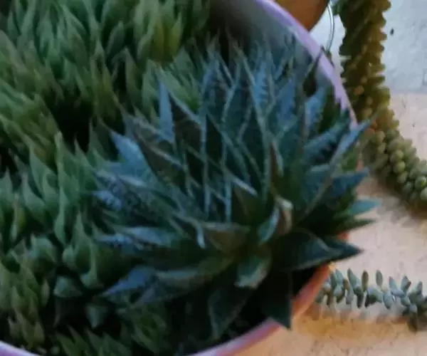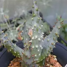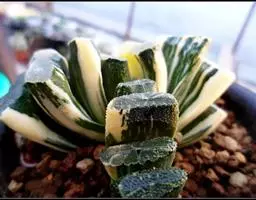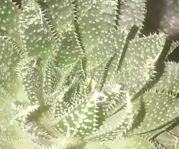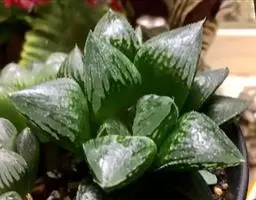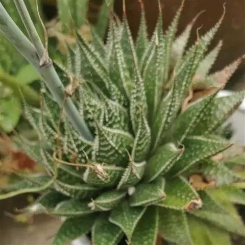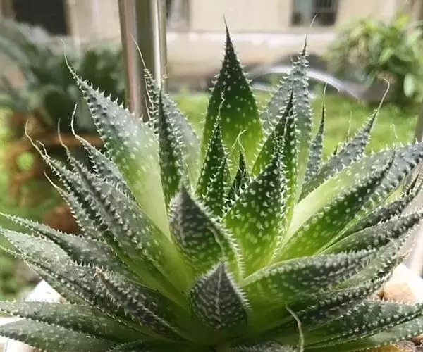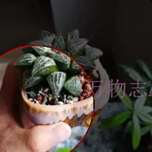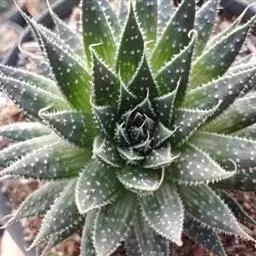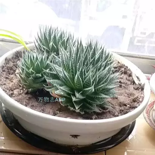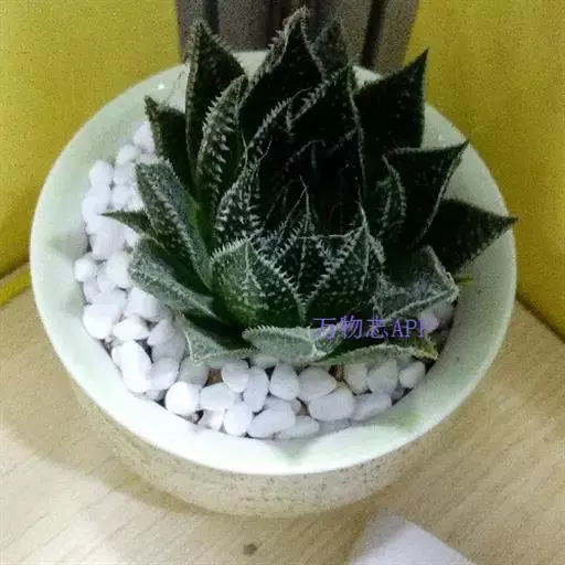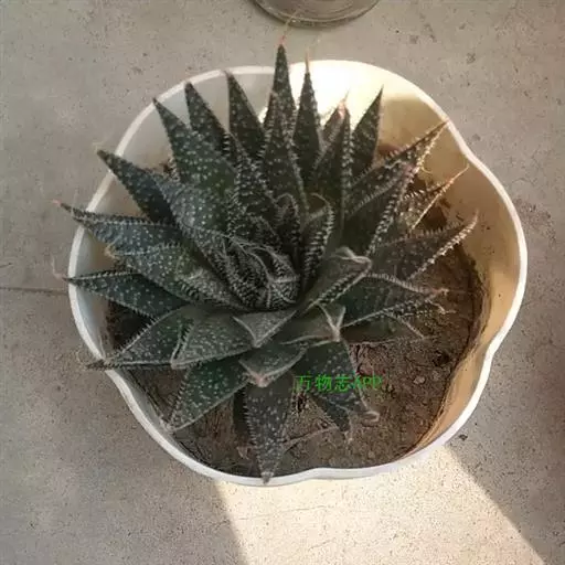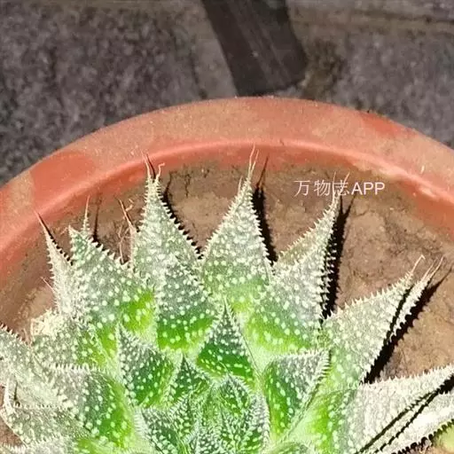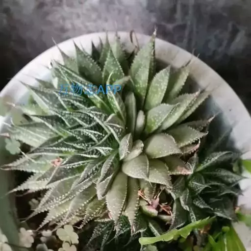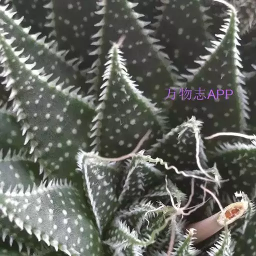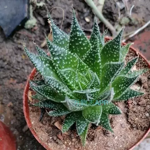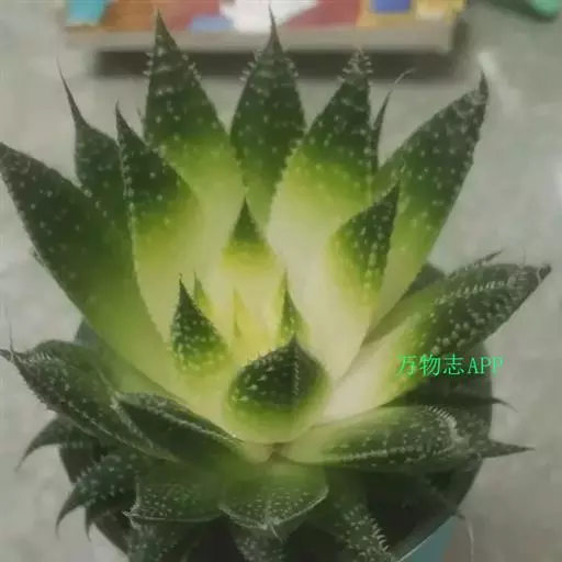 绫锦(学名Aloe aristata ),百合科芦荟属多年生肉质草本,株高可达12厘米,叶片呈莲座状,叶上有小白色斑点和白色软刺,叶缘具细锯齿,深绿色。