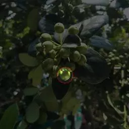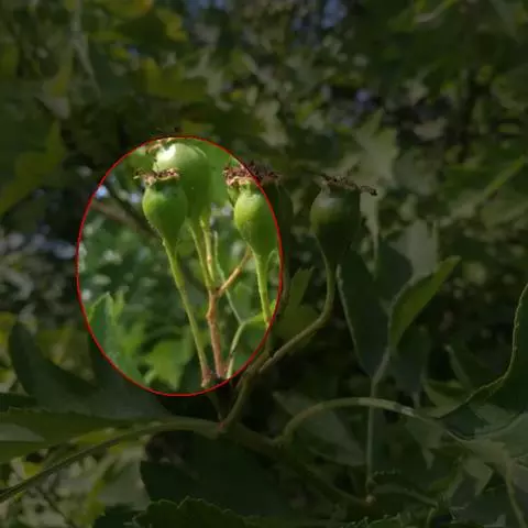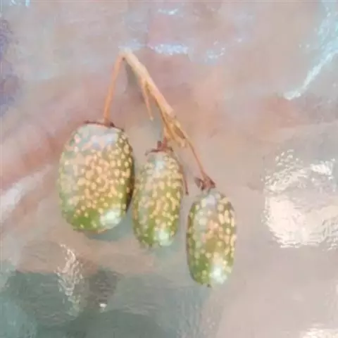 果圆柱状,长1.7厘米,直径1厘米,幼时被绒毛,成熟时秃净,有斑点。盛花期5月中旬一下旬。