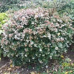 大花六道木,忍冬科六道木属半常绿矮生灌木。其幼枝为红褐色,有短柔毛;叶片倒卵形为墨绿色,…