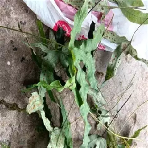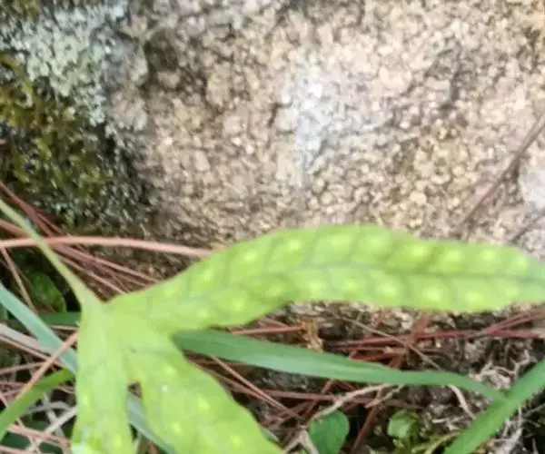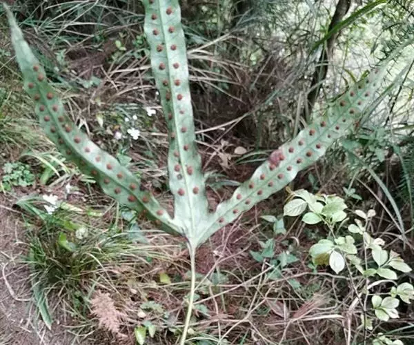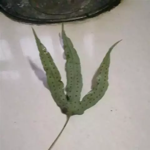鳞片披针形,长约5毫米,棕色,顶端长渐尖,边缘全缘或偶有疏齿。叶远生;叶柄的长短和粗细均变化较大,长约在2-20厘米,直径约在0.5-2毫米范围,禾秆色,光滑无毛。叶片为从卵圆形至长条形,长约2-20厘米,宽1-2厘米,顶端短渐尖或钝圆,基部楔形至圆形;分裂的叶片其形态也极其多样,裂片或长或短,或较宽,或较狭,但通常都是中间裂片较长和较宽。叶片 (或裂片) 的边缘具缺刻和加厚的软骨质边,通直或呈波状。中脉和侧脉两面明显,侧脉不达叶边;小脉不明显。孢子囊群大,圆形,在叶片中脉或裂片中脉两侧各一行,着生于中脉与叶缘之间;孢子表面具刺状突起 。