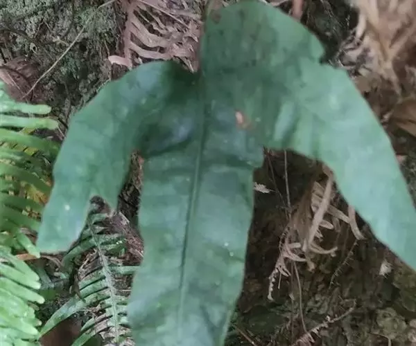 金鸡脚假瘤蕨土生植物,根状茎长而横走,粗约3毫米,密被鳞片;叶片为单叶,形态变化极大,单叶不分裂,或戟状二至三分裂;叶纸质或草质,背面通常灰白色,两面光滑无毛。