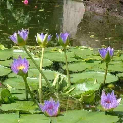埃及蓝睡莲:是多年生水生草本;根状茎肥厚。叶二型:浮水叶圆形或卵形,基部具弯缺,心形或箭形,常无出…