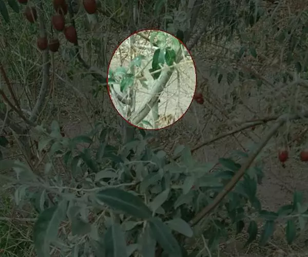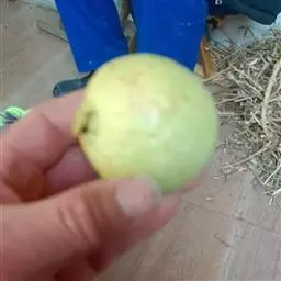 果实长圆球形,一端稍尖,直径约1cm,表面土黄色或暗绿褐色,质较硬,顶端有宿存萼片5枚及花柱残基。内有种子多数,黄白色,扁平。味淡、微甜,气微香。以个大、干燥者为佳。