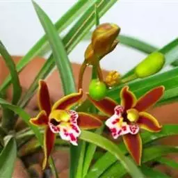 上盆(或翻盆)时间一般在春季3-4月或秋季10-11月。花盆以口小、盆深、底孔大的为佳。新从山上挖来的野生苗需理植于瓦盆(泥盆)中,这样兰花泥易干,通气性好.容易发根;2-3年后方可换人紫砂盆或瓷盆。兰花种植(在盆中)的方法与一般花卉不同,尤其是名种兰花,翻种移盆必须洗根。方法足将根浸入清水中,用旧牙刷或毛笔轻轻洗刷,切勿用力过大伤根;用剪刀将残叶、黄叶、断裂根、发黑腐烂根剪去,注意勿伤幼芽。然后将处理好的植株放在阴凉通风处晾干,待根部发白并显细小皱纹柔软时,再植入盆中。