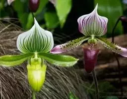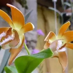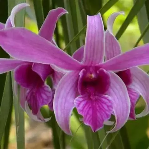 长叶山兰:假鳞茎椭圆形至近球形,有2-3节,外被撕裂成纤维状的鞘。叶2枚,偶有1枚,生于假鳞茎顶端…