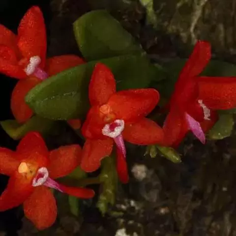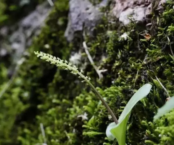 花瓣线状披针形或近线形,长约0.8毫米,宽约0.3毫米;唇瓣位于下方,近披针状三角形或舌状,长约0.7毫米,中部宽约0.6毫米,先端近渐尖,基部两侧有一对横向伸展的耳;耳线形或狭长圆形,长6-7毫米,宽2-3毫米,通常直立;蕊柱粗短,长约0.3毫米。花期4月。
